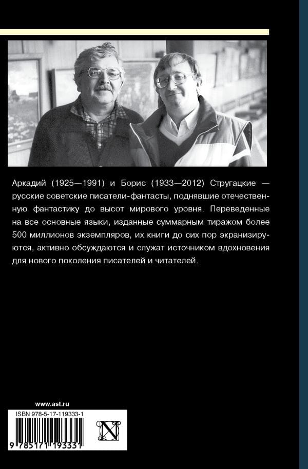 Arkady (1925–1991) and Boris (1933–2012) Strugatsky are Russian Soviet science fiction writers who raised Russian science fiction to the heights of world level. Translated into all major languages, published with a total circulation of over 500 million copies, their books are still being filmed, actively discussed and serve as a source of inspiration for a new generation of writers and readers.