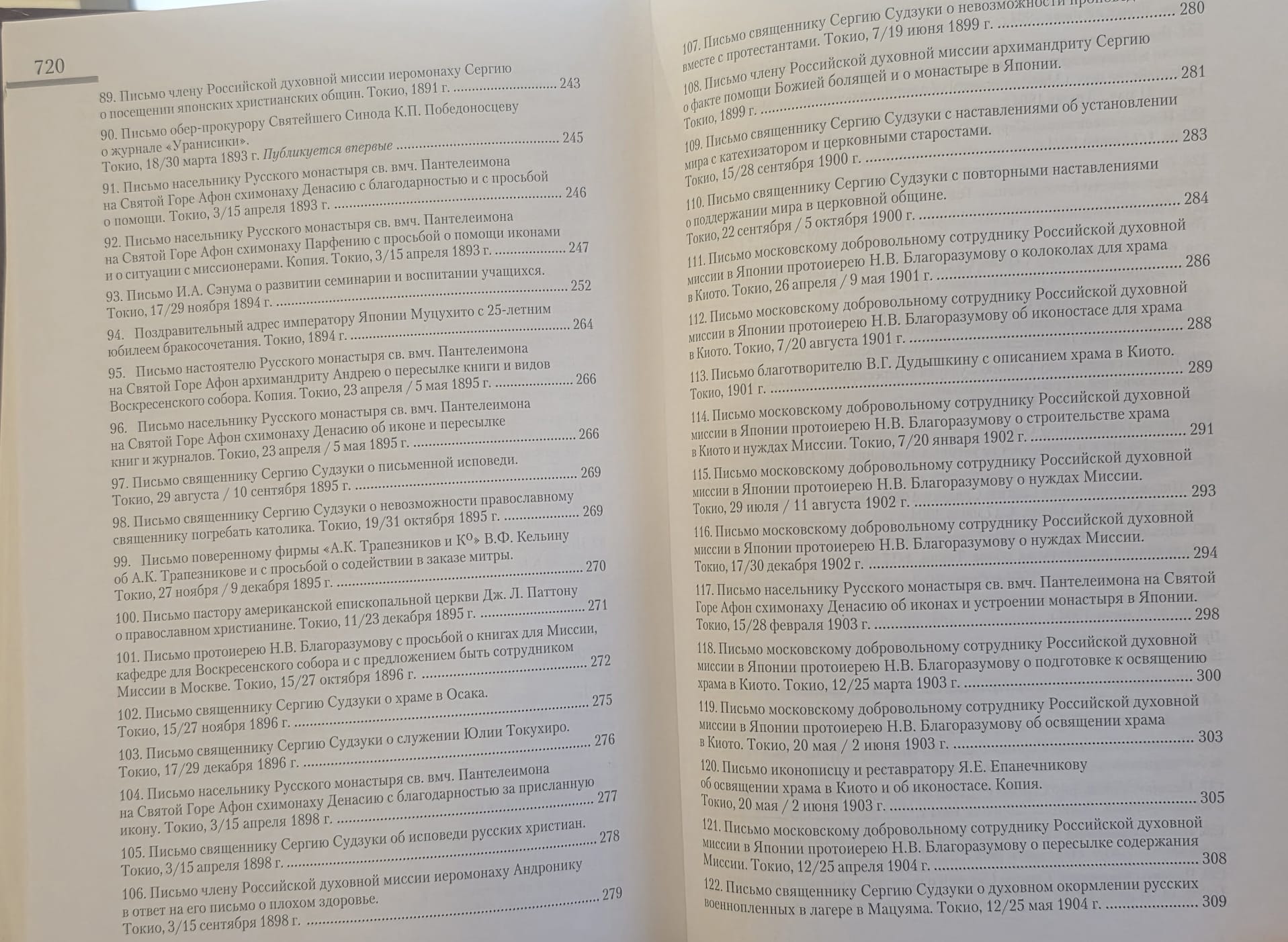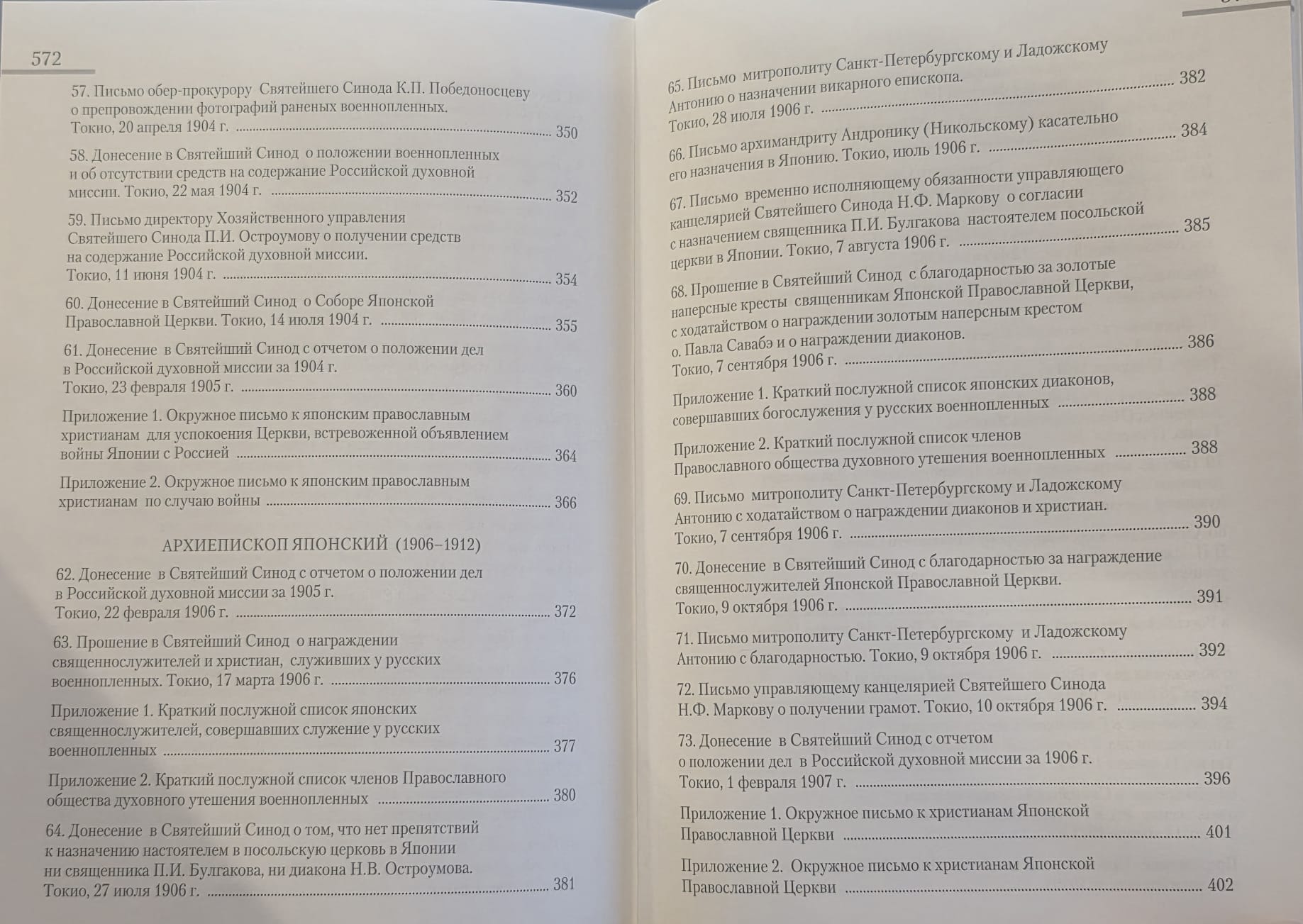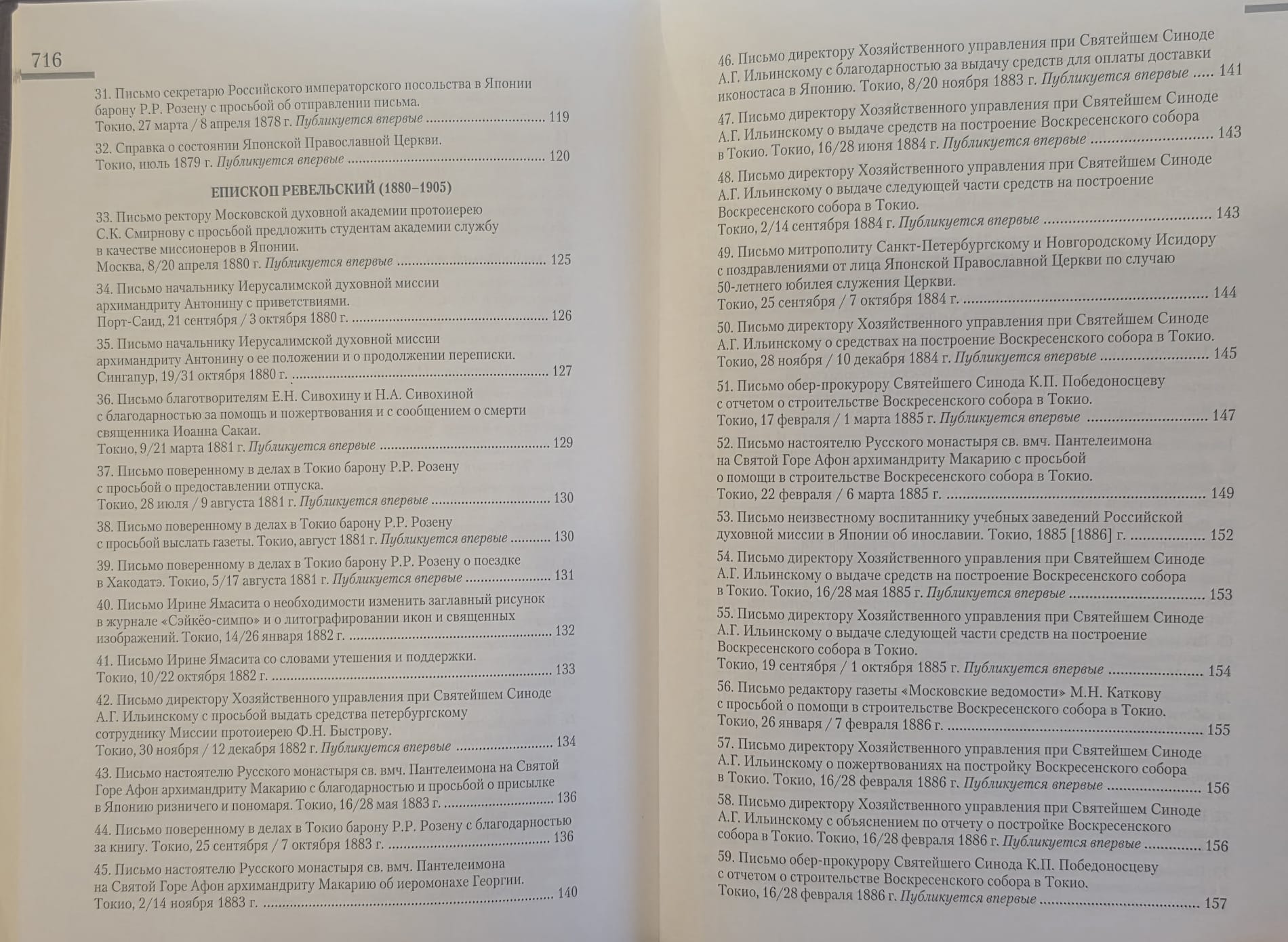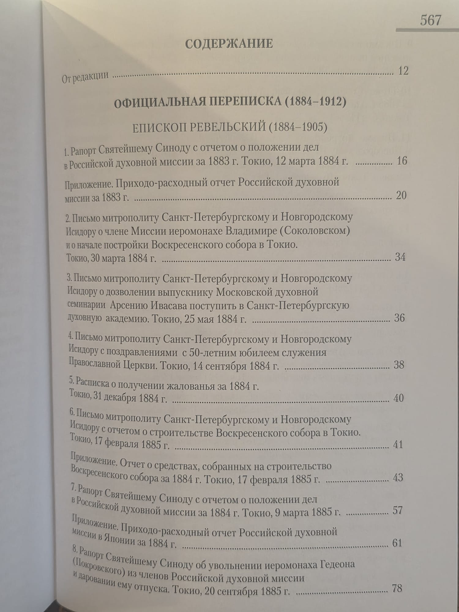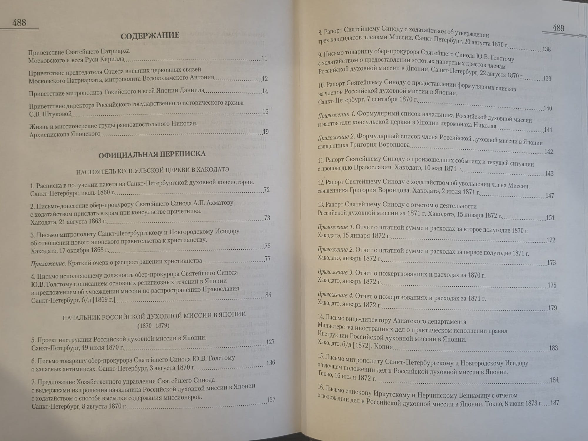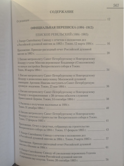 The first volume contains the official correspondence of Saint Nicholas of Japan for 1860-1883. The publication contains photo documents from the saint's era, facsimiles of some of his manuscripts, a map of Japan from the end of the 19th century with the routes of his missionary travels indicated, demonstrating the spread of Orthodoxy in the country. The second volume includes official correspondence covering the period from 1884 to 1912. The publication is provided with illustrations and a map of the missionary travels of the head of the Russian Ecclesiastical Mission for 1891-1898.