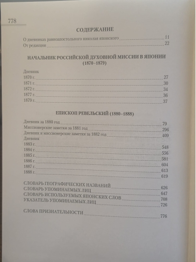 The collected works of Saint Nicholas of Japan, presented in 6 volumes, include official correspondence, private letters and diaries of the saint. The publication also includes accompanying materials related to the activities of the saint and the Russian Ecclesiastical Mission in Japan. All texts are published in the new orthography and are supplied with scientific reference apparatus: commentary, dictionaries of the mentioned persons and geographical names. A number of documents are published for the first time.