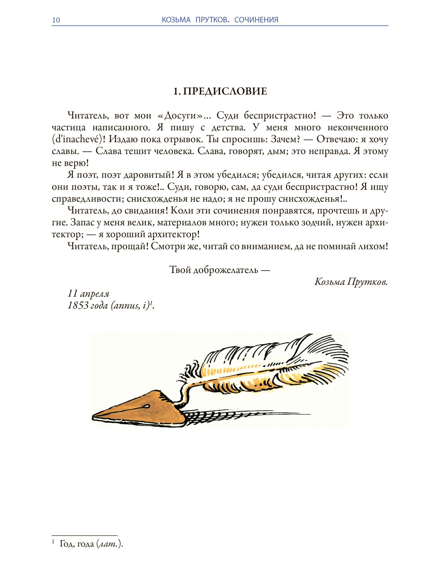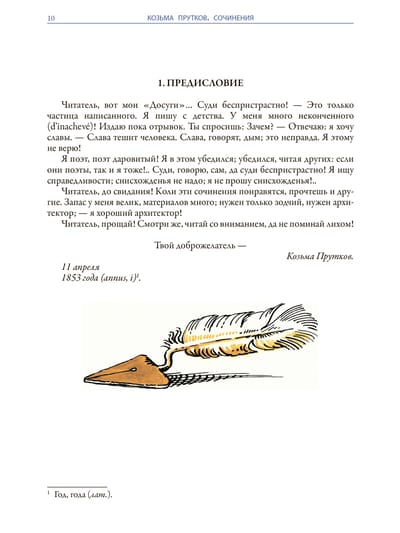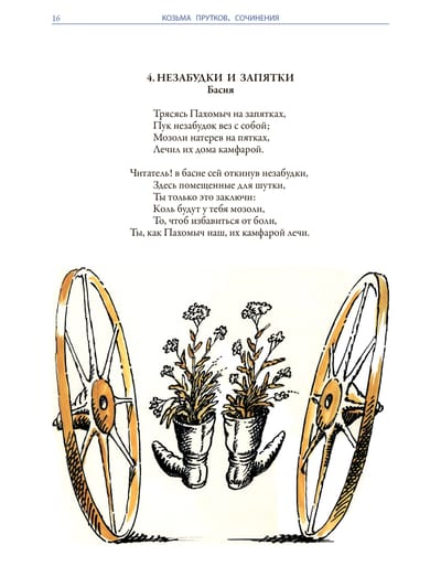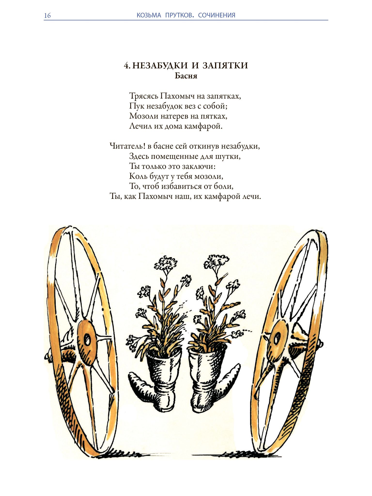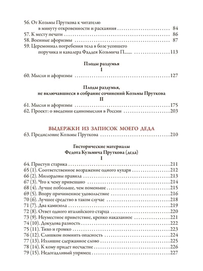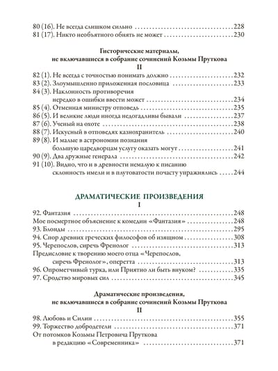 Kozma Petrovich Prutkov is a fictional author, a literary mask, a collective pseudonym under which the poet Count Alexei Konstantinovich Tolstoy, brothers Alexei, Vladimir and Alexander Zhemchuzhnikov printed their works in the 50-60s of the 19th century. The book is decorated with 262 illustrations by cartoonist, caricaturist and book designer Sergey Petrovich Tyunin.