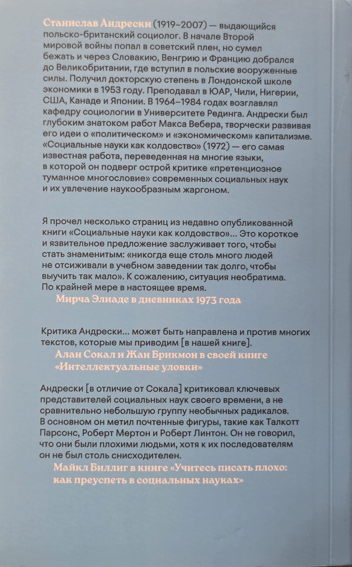 Andreski draws striking parallels between traditional magical practices and contemporary social research, demonstrating how the academic establishment uses obscure jargon and methodological rituals to maintain its status, often failing to produce truly useful knowledge. He calls for a return to clarity of thought, precise presentation, and a truly scientific approach in the social sciences.