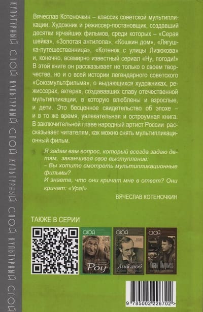 Vyacheslav Kotenochkin is a classic of Soviet animation. The artist and director who created dozens of the brightest films, including “Gray neck”, “Golden antelope”, “Cat house”, “traveler frog”, “Kitten from Lizyukova Street” and, of course, the world-famous series “Well, wait!” In this book, he tells not only about his work, but also about the entire history of the legendary Soviet Soyuzmultfilm, about outstanding artists, directors, actors who created the glory of domestic animation, in which both adults and children are in love. It is an invaluable testament to the era – and at the same time, a fascinating and witty book. In the final chapter, the People’s Artist of Russia tells readers how to make an animated film.