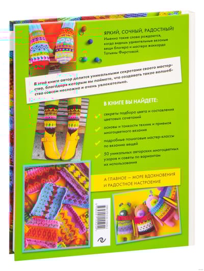 Children literally squeal with happiness at the sight of toys bound by Tatiana Firstova, a master and blogger. And a smile never leaves the faces of adults. These sweaters, hats, snoods and mittens are not just beautiful. They carry a bright charge of great mood, which we lack in the daily routine. In this book, the author generously shares her secrets of knitting a bright multicolor jacquard, unique author's patterns, secrets of color combination and such subtleties that will allow everyone to make your favorite hobby and the lives of their loved ones much brighter and more joyful. Thanks to detailed explanations, clear schemes and step-by-step master classes, the book will suit not only those who have already mastered the jacquard, but also those who are just beginning to get acquainted with knitting. Knit yourself a great mood with this book!