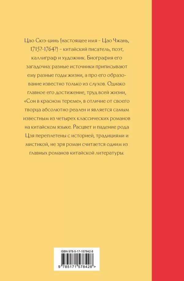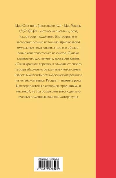 Cao Xue-qin (real name Cao Zhan, 1715?-1764?) was a Chinese writer, poet, calligrapher and painter. His biography is mysterious: different sources attribute to him different years of life, and about his education is known only from rumors. However, his main achievement, his life's work, The Dream in the Red Terem, unlike its creator, is absolutely real and is the most famous of the four classical novels in Chinese. The rise and fall of the Jia family is intertwined with history, tradition and mysticism, not for nothing is the novel considered one of the major novels of Chinese literature.