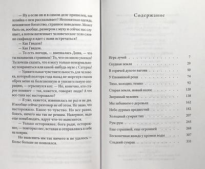 The collection consists of fourteen stories, according to the number of sonnet lines. The title of each is a poem quote. Some are taken from the classical verses of Feth, Annensky or Blok. Each of the poems-"sources" resonates with the text of the corresponding story. The stories rhyme with each other. The action takes place in modern times. Heroes investigate crimes, read poems, search for treasure, suffer from jealousy, compose music, experience phobias of different nature, ride a bicycle, fish and try to hide from the reproaches of their own conscience, but in each of the stories there is one or another transformation of reality or the hero.