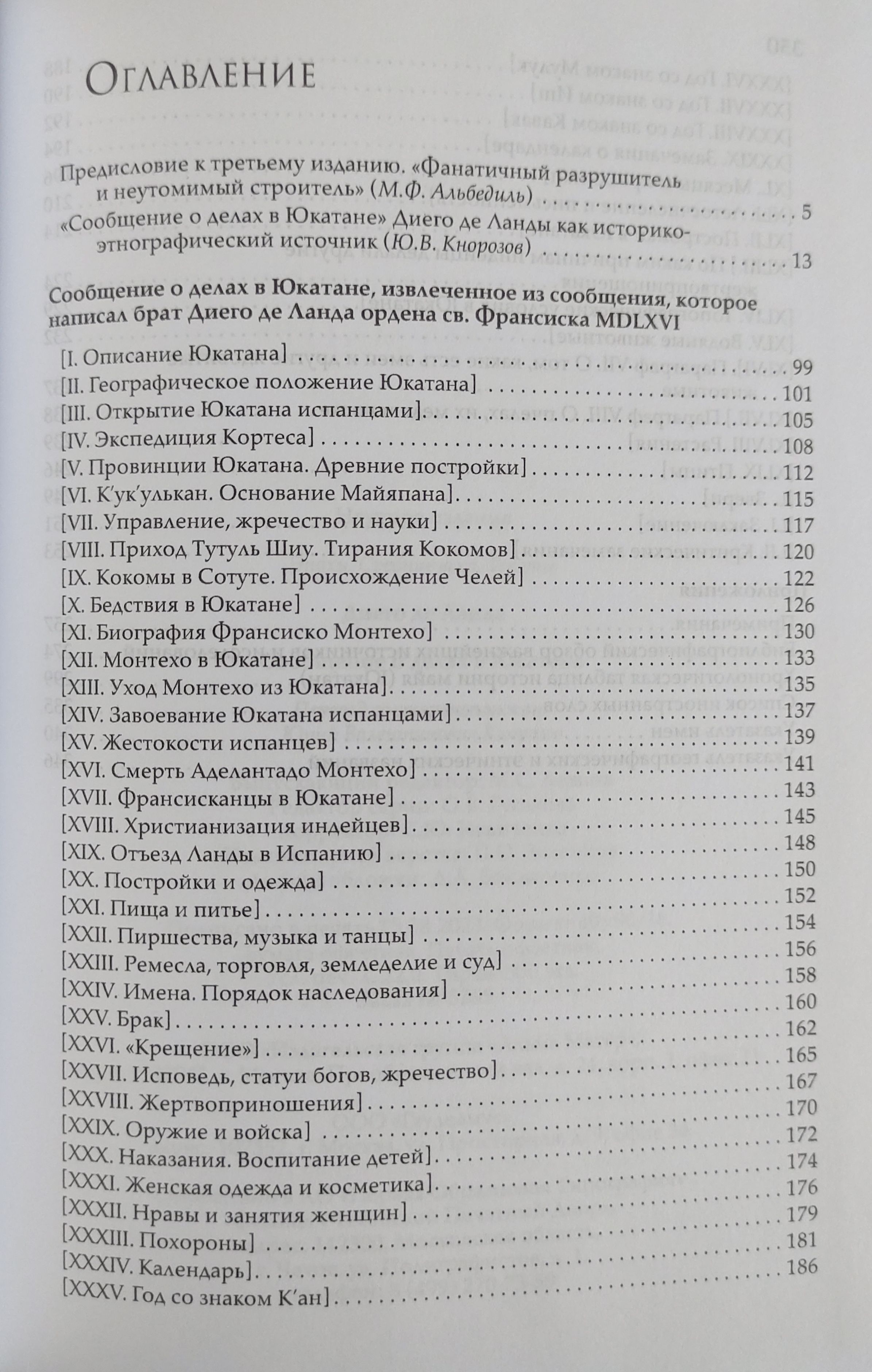 "The Report of Affairs in Yucatán is a major source on the history and ethnography of the Maya at the time of the Spanish conquest. This text, which is an excerpt from a more complete manuscript that has not survived, contains rich and varied material on ancient Maya life. Despite the controversial figure of the author, the Franciscan missionary Diego de Landa (1523-1579), who not only studied the culture and customs of the Maya but also played a role in the destruction of their heritage, the Report of Affairs in Yucatán preserves unique information about the conquered people, including their written language. The first publication of the source in Russian translation was realized in 1955 by the outstanding scientist Y. V. Knorozov, the founder of the Soviet school of Mayanism and decipherer of Maya writing. The extensive introductory article has not lost its scientific value even almost 70 years after it was written.