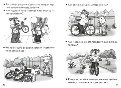 Dear parents and teachers. We offer you tasks for the development of coherent speech and creative imagination in children aged 4-5. The initial stage in the development of coherent speech is composing a sentence based on a picture. Only after making sure that the child has learned to make a grammatically correct complex sentence on the picture, using leading questions from the adult, offer him a new stage of work - composing a story on a series of pictures. The notebook is designed for joint work between adults and children. It is addressed to parents and teachers for lessons with preschoolers. We wish success to your child.