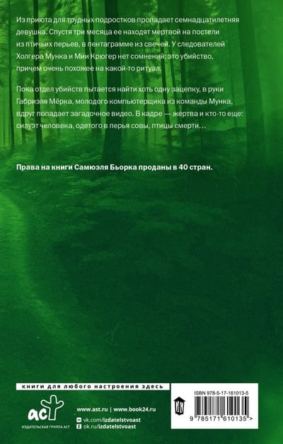 A seventeen-year-old girl goes missing from a shelter for troubled teens. Three months later she is found dead on a bed of bird feathers, in a pentagram of candles. Investigators Holger Munch and Mia Kruger have no doubt: it's a murder, and very much like some kind of ritual.