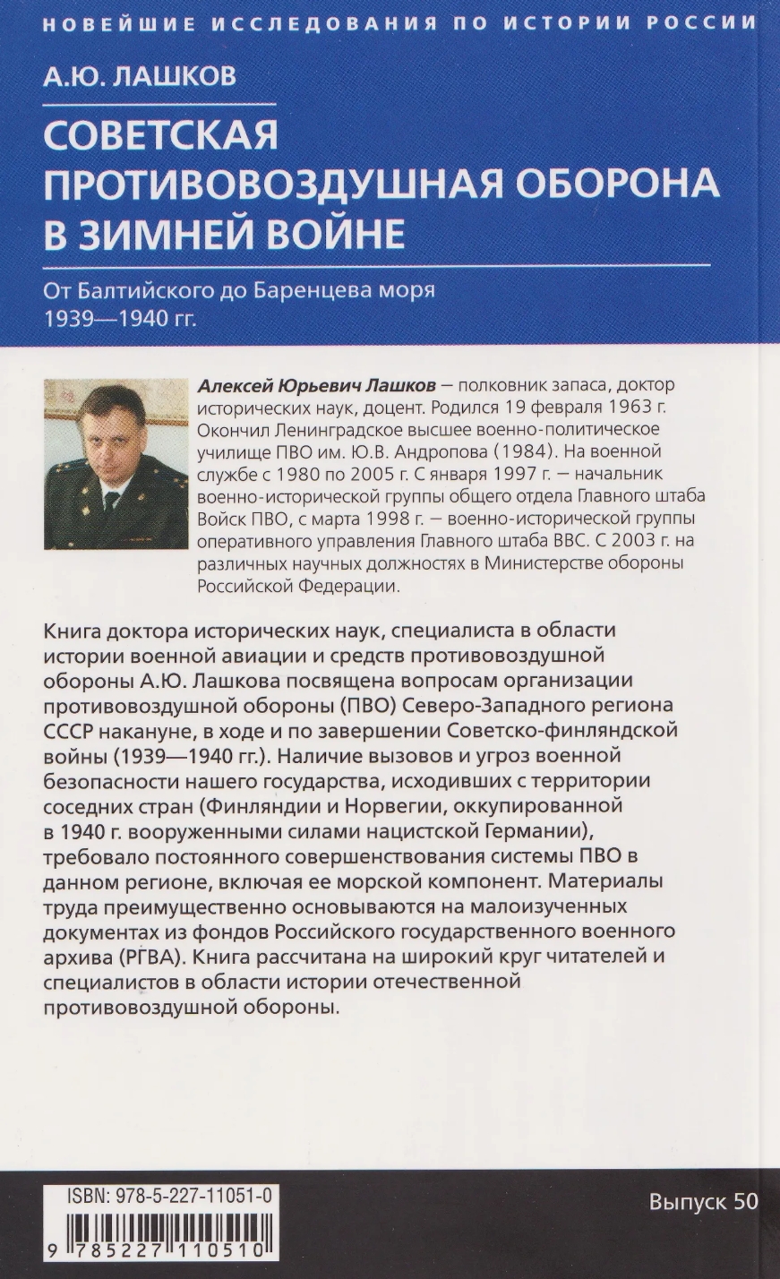 This book by A. Yu. Lashkov, a doctor of historical sciences and specialist in the history of military aviation and air defense, examines the organization of air defense in the northwestern region of the USSR before, during, and after the Soviet-Finnish War (1939-1940). The challenges and threats to our country's military security emanating from neighboring Finland and Norway (occupied by Nazi Germany in 1940) required the constant improvement of the air defense system in this region, including its naval component. The book is primarily based on little-studied documents from the collections of the Russian State Military Archive (RSMA).