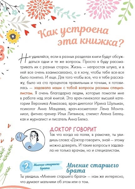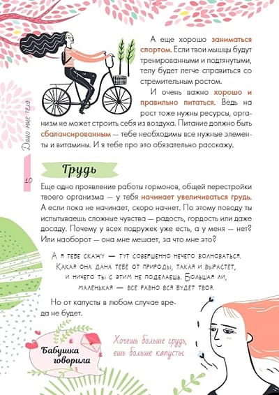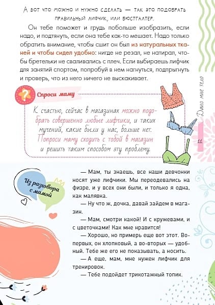 This book is written specifically for teenage girls, and it should be read during that difficult period when a girl from a child turns into a girl, a young and beautiful woman. Useful advice from the famous actress Nonna Grishaeva, which she gives to her daughter, is supported by the recommendations of a doctor, fitness trainer, stylist. Bright modern illustrations are perfectly combined with a sincere, heartfelt text by the famous actress, which touches on all the "pain points" of a growing teenage girl.