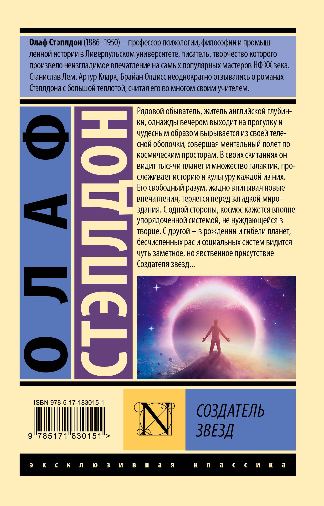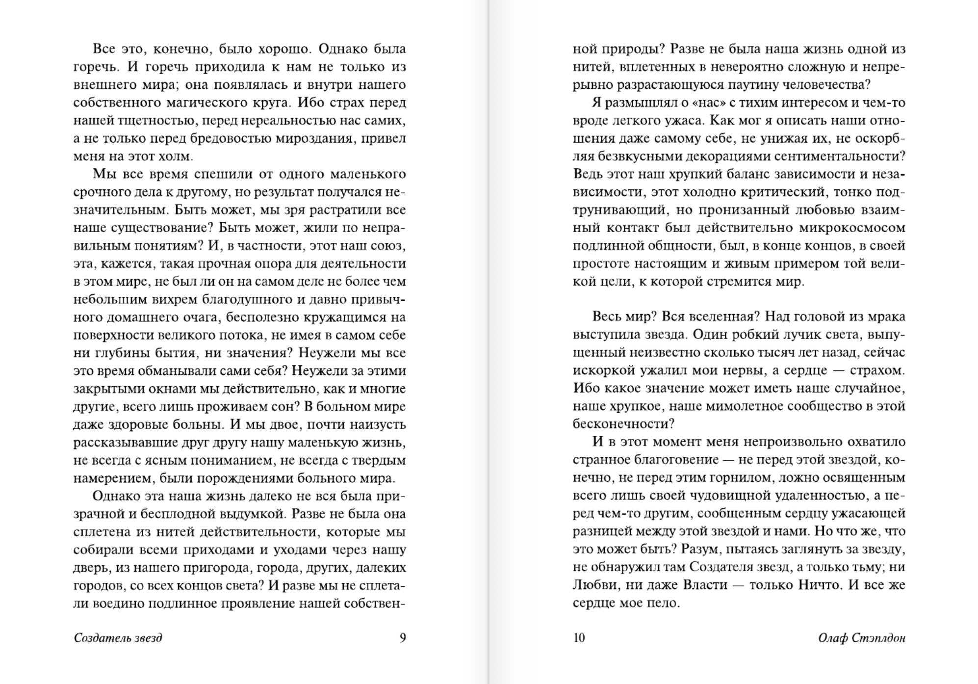 An ordinary citizen, a resident of the English countryside, goes for a walk one evening and miraculously escapes his physical form, embarking on a mental journey through the vastness of space. In his wanderings, he sees thousands of planets and countless galaxies, tracing the history and culture of each. His free mind, eagerly absorbing new impressions, becomes lost in the mystery of the universe. On the one hand, the cosmos appears to be a perfectly ordered system, in need of no creator. On the other, in the birth and death of planets, countless races, and social systems, one sees the subtle yet undeniable presence of the Creator of the Stars...