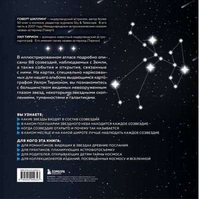 A star guide from legendary authors: writer and astronomer Govert Schilling and cartographer Wil Thirion, creator of the most accurate star maps of the 20th century. Bright, clear illustrations and a well-thought-out structure make it easy to navigate the 88 constellations. Concise descriptions and interesting facts about events occurring within each constellation's zone arouse genuine curiosity and interest in exploring the cosmos.