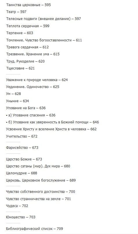The publication is a systematized selection of the saint's precepts, compiled on the basis of an analysis of his works. The structure of the collection makes it easier to find the teachings in the Collected Works: quotations with an indication of their source are preceded by theses.