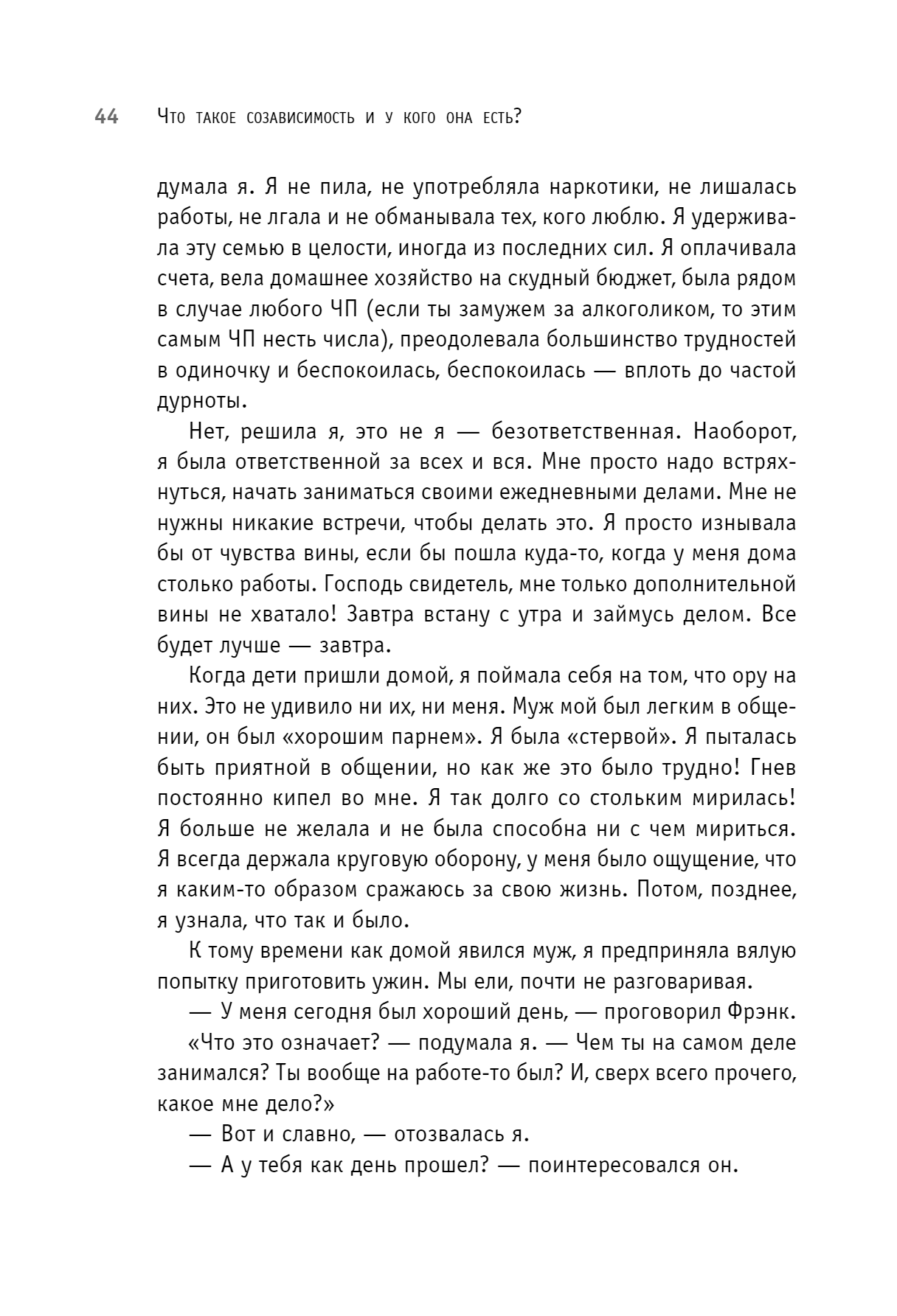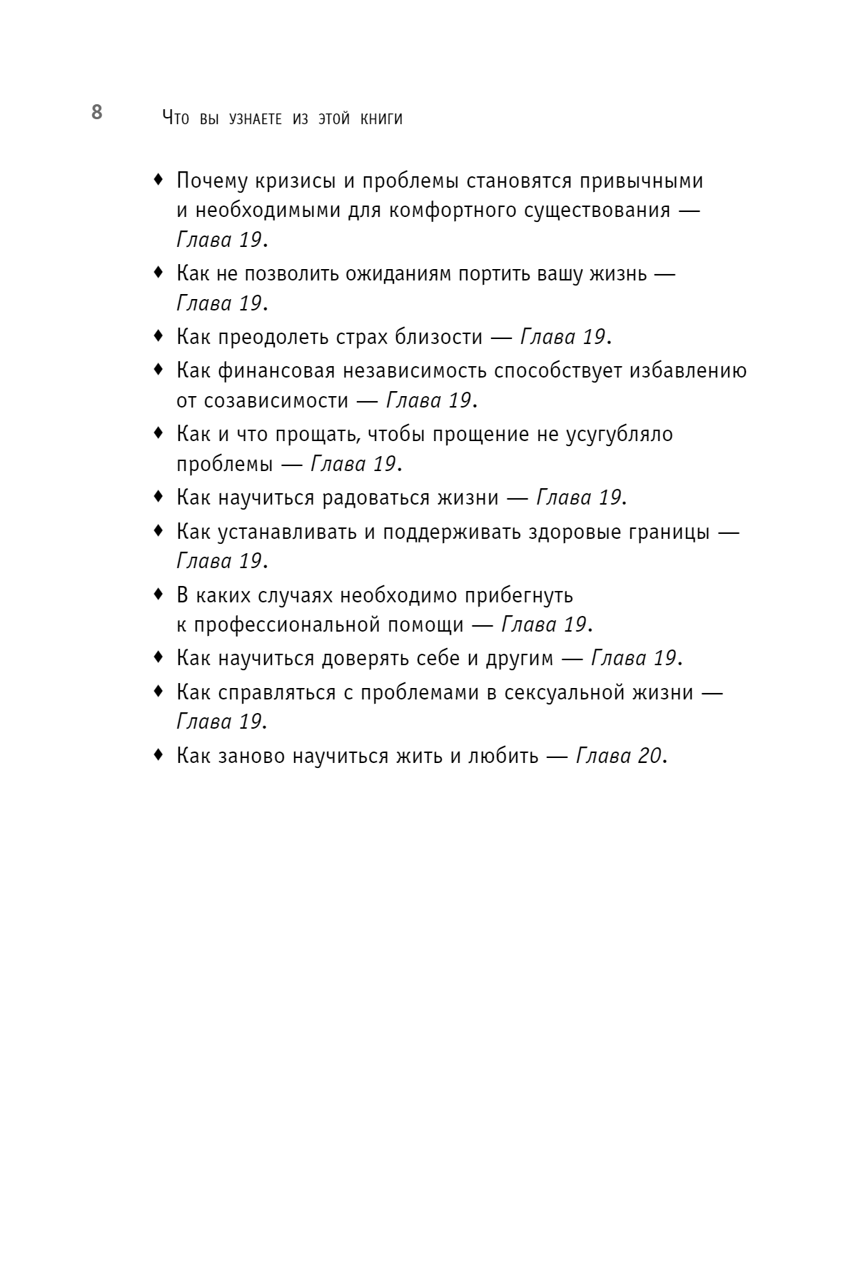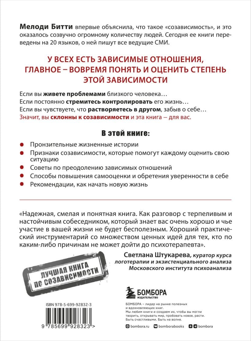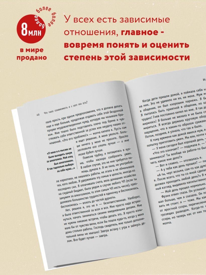 We all have dependent relationships, but it’s important to recognize and assess the extent of that dependency in time. Maybe you perceive other people’s problems as acutely as your own. Or, even if unconsciously, you seek to control the life of a loved one. It’s possible that your own life without someone seems empty and meaningless to you. Perhaps you dissolve in another, forgetting about yourself. Melody Beattie calls our desire to endlessly care for and save loved ones a disease and explains how to cope with this disease so as not to completely destroy yourself.