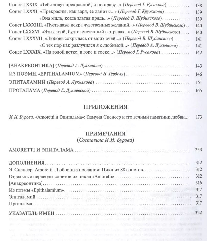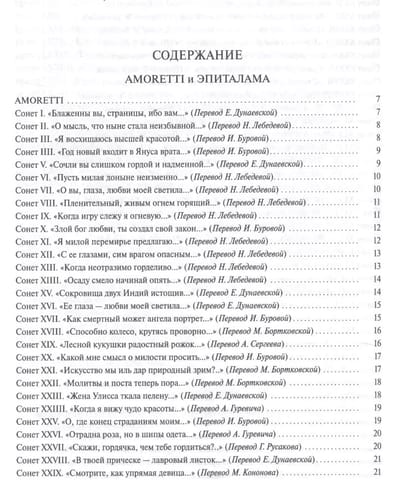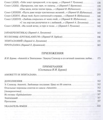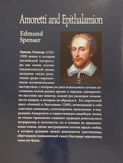 First published in 1595, the lyric cycle by the eminent English Elizabethan poet Edmund Spenser (1552-1599), Amoretti and Epithalamas, occupies a special place in the history of Western European Renaissance poetry. Comprising a sonnet sequences, a group of "anacreontic" poems, and a spectacular "Epithalamas," it does not so much continue the main line of Petrarchan love lyricism as demonstrate the poet's desire to distance himself from continental conventions. Dedicating these poems to his fiancée Elizabeth Boyle, Spenser emphasizes by the original form of sonnets the fundamental novelty of the ideal of love, sanctified by the bonds of church marriage, and for the first time in the history of the genre turns "Epithalamus" into a monument in honor of his own wedding day.