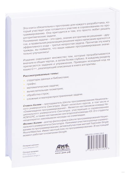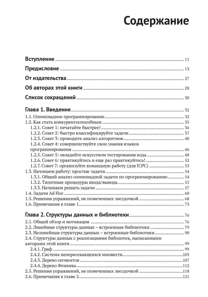 This book is a must-read for every programmer who participates in or is preparing to participate in programming competitions. It will also be useful for those who simply enjoy solving problems in computer science and programming. Studying the material in the book will allow readers to take a step forward from an ordinary programmer to one of the best. The book covers many topics, which are worked out at first in general terms, and then in more depth. Therefore, it is recommended to read the same section not once, but several times. Almost every section offers various tasks and exercises. Particularly difficult ones can be skipped, so that after studying the next chapters, you can return to them again.