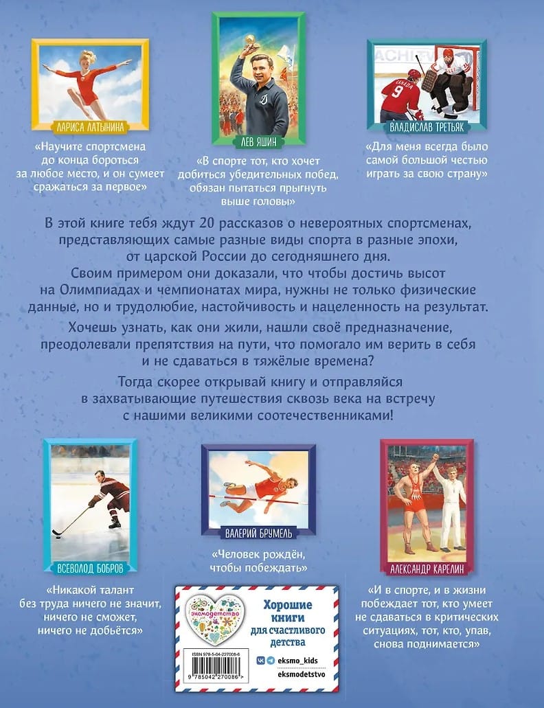 This book features 20 stories about incredible athletes representing a wide range of sports across eras, from Tsarist Russia to the present day. They have proven by their example that achieving success at the Olympics and World Championships requires not only physical prowess, but also hard work, perseverance, and a determination to achieve results.