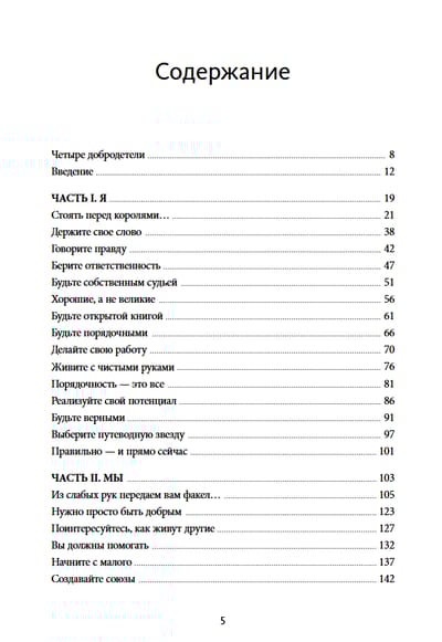 The book is divided into three parts. Each part represents a different level of understanding and practicing justice: "I," "We," and "All" (about love, mercy, tolerance, and forgiveness).