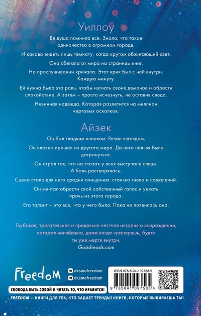 Willow always felt sad, even in the midst of a crowd. Her gaze was often clouded by darkness, despite the bright and shining world around her. Willow drowned in literature to save herself, and she wanted a role with all her heart, at any cost, just to get rid of the frightening images that kept popping up in her mind. Her only desire was to dissolve into the void, to disappear into the role and never appear again. Isaac always resembled something untouchable, distant, unattainable. Something inexplicable emanated from him, sometimes frightening, but most often attractive. He tried to preserve his gift, cherished it as if it were a pearl. But then he met her...