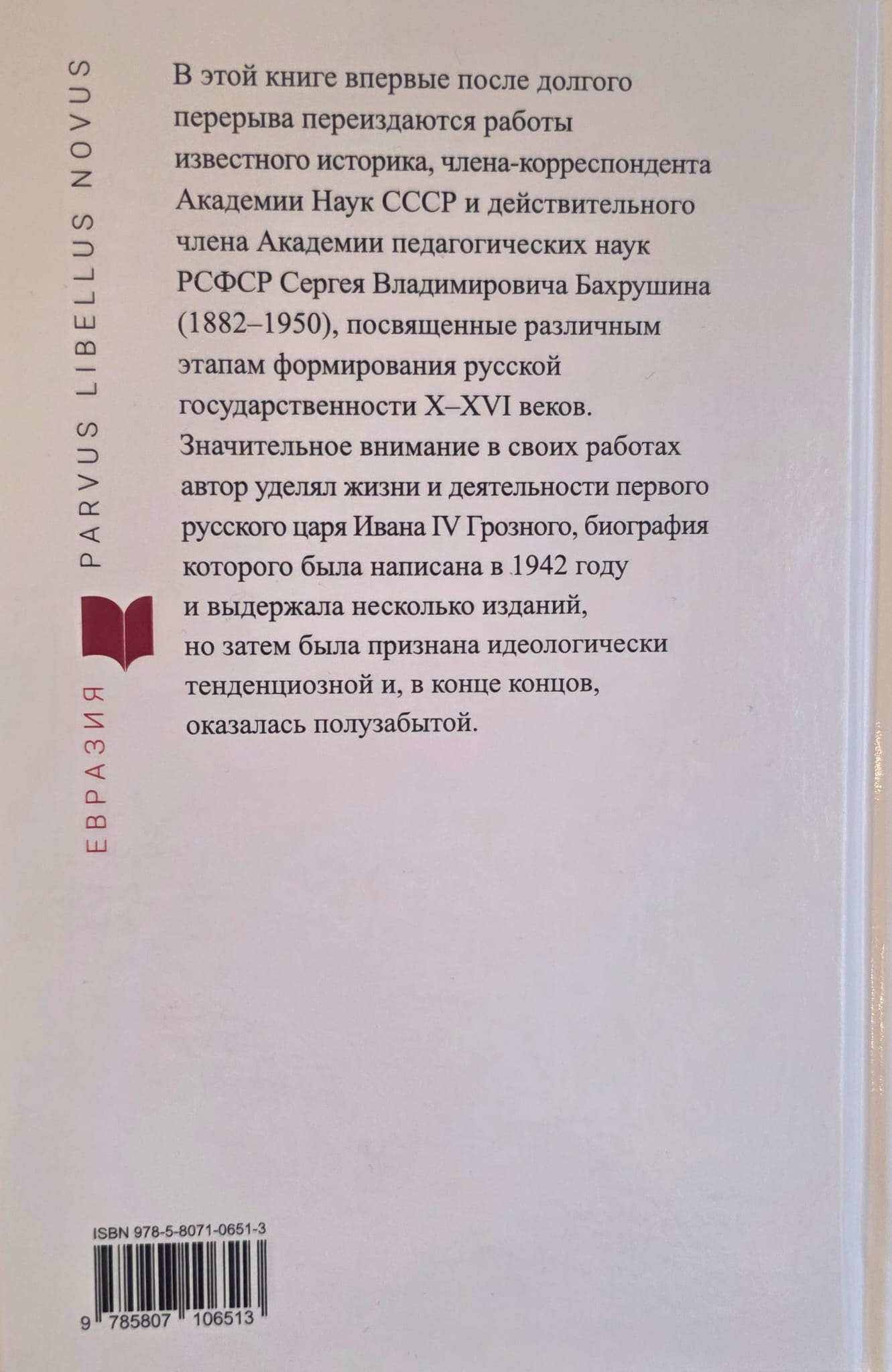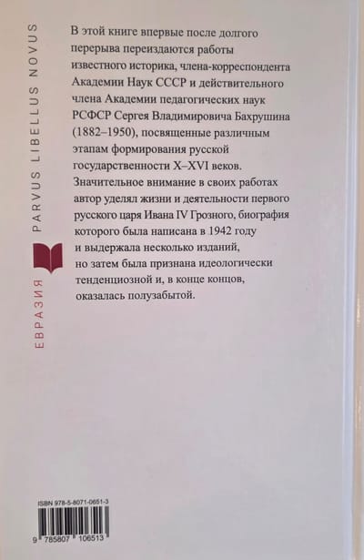 This book republishes for the first time after a long hiatus the works of renowned historian Sergei Vladimirovich Bakhrushin (1882–1950), Corresponding Member of the USSR Academy of Sciences and Full Member of the Academy of Pedagogical Sciences of the RSFSR, dedicated to various stages of the formation of Russian statehood from the 10th to the 16th centuries. In his works, the author devoted considerable attention to the life and work of the first Russian tsar, Ivan IV the Terrible, whose biography was written in 1942 and went through several editions, but was subsequently deemed ideologically biased and, ultimately, fell into disuse.