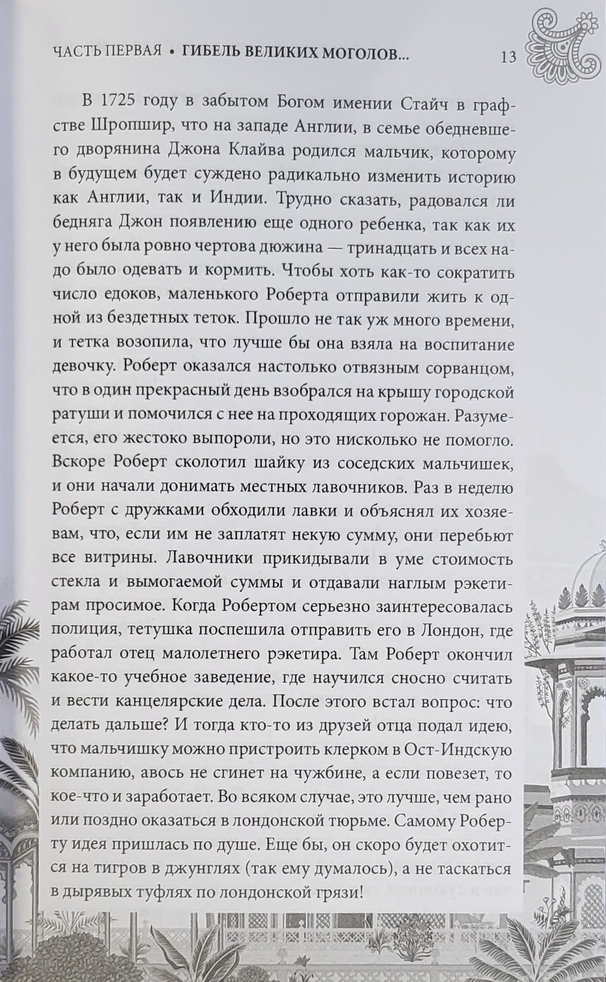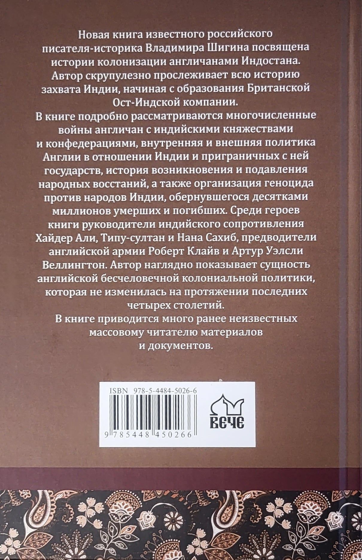 The book deals in detail with the numerous wars of the British with the Indian principalities and confederations, the internal and foreign policy of England towards India and the states bordering it, the history of the emergence and suppression of popular uprisings, as well as the organization of genocide against the peoples of India, which turned into tens of millions of dead and dead. Among the heroes of the book are the leaders of the Indian resistance Haider Ali, Tipu Sultan and Nana Sahib, the leaders of the British army Robert Clive and Arthur Wellesley Wellington. The author clearly shows the essence of the English inhuman colonial policy, which has not changed during the last four centuries.