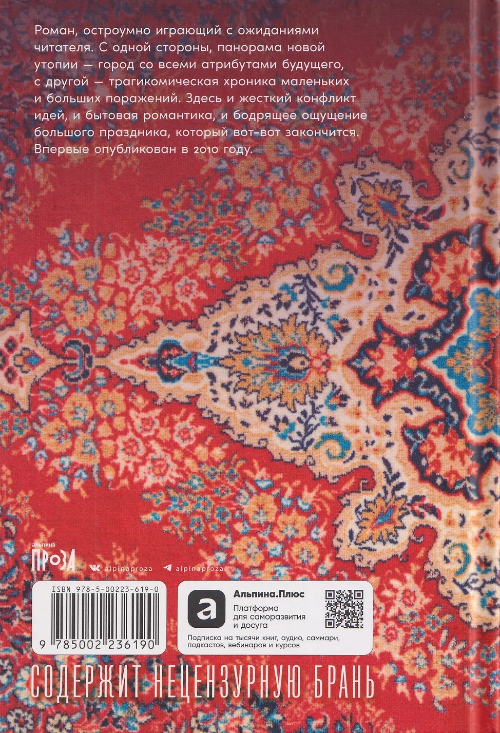 A novel that wittily plays with the reader's expectations. On the one hand, it offers a panorama of a new utopia—a city with all the trappings of the future; on the other, a tragicomic chronicle of defeats large and small. It features a stark conflict of ideas, the romance of everyday life, and the invigorating feeling of a grand celebration about to end. First published in 2010.