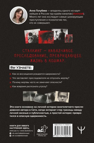 The author of this book is one of Russia's most popular true crime bloggers, with millions of views. She has spent many years researching the phenomenon of stalking and now, for the first time, reveals what it means to live as a stalker's victim.