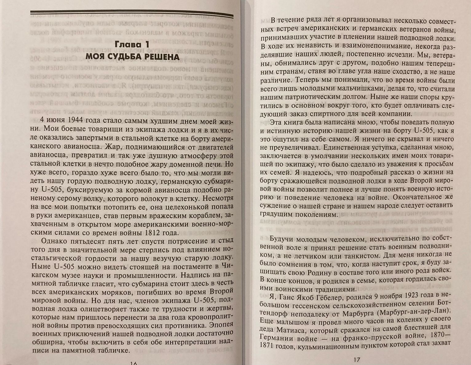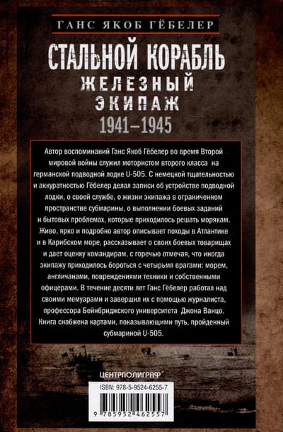 The author of the memoirs, Hans Jacob Goebeler, served as a second-class motorman on the German submarine U-505 during World War II. With German thoroughness and accuracy, Goebeler made notes about the design of the submarine, about his service, about the life of the crew in the limited space of the submarine, about the performance of combat missions and everyday problems that the sailors had to solve. The author vividly, brightly and in detail describes the campaigns in the Atlantic and the Caribbean, talks about his comrades in arms and evaluates the commanders, bitterly noting that sometimes the crew had to fight four enemies: the sea, the British, damage to equipment and their own officers. Hans Goebeler worked on his memoirs for ten years and completed them with the help of journalist, professor of Bainbridge University John Vanzo. The book is supplied with maps showing the path traveled by the submarine U-505.