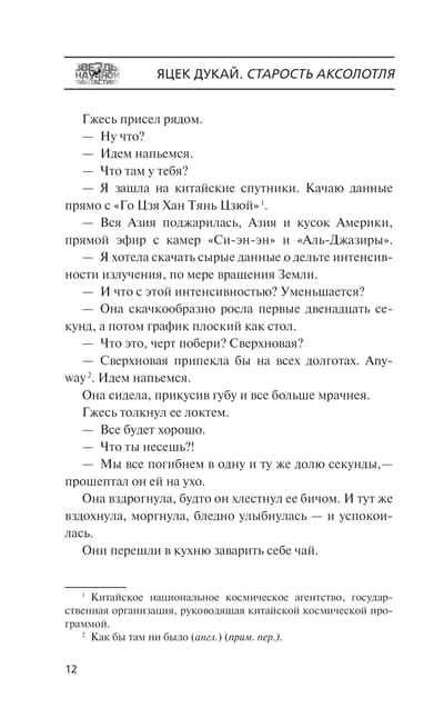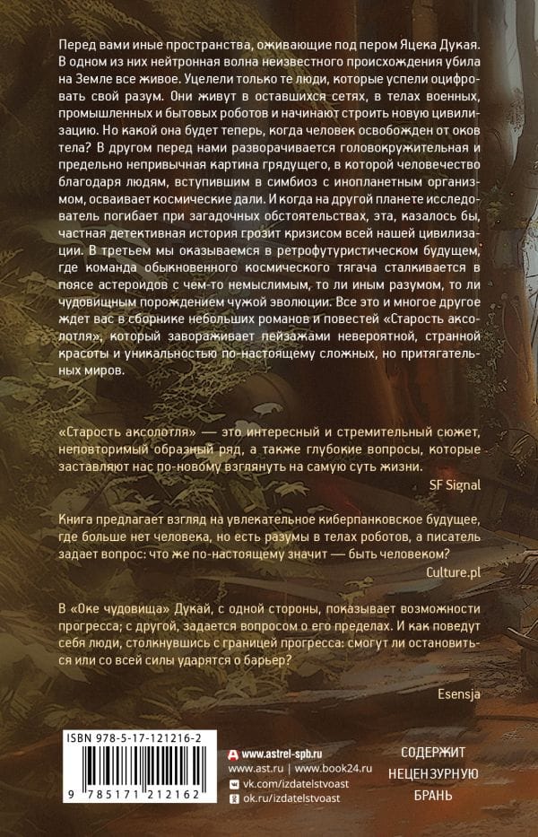 In front of you are other spaces that come to life under the pen of Jacek Dukaj. In one of them, a neutron wave of unknown origin killed all life on Earth. Only those people who managed to digitize their minds survived. They live in the remaining networks, in the bodies of military, industrial and household robots and begin to build a new civilization. But what will it be like now that man has been freed from the shackles of the body? In another before us unfolds a dizzying and extremely unfamiliar picture of the future, in which mankind thanks to people who entered into symbiosis with an alien organism, mastering the cosmic distances. And when on another planet a researcher dies under mysterious circumstances, this seemingly private detective story threatens the crisis of our entire civilization. In the third, we find ourselves in a retrofuturistic future, where the crew of an ordinary space tractor collides in the asteroid belt with something unthinkable, either a different mind or a monstrous spawn of alien evolution. All this and more awaits you in the collection of short novels and novellas "The Old Age of the Axolotl", which mesmerizes with landscapes of incredible, strange beauty and the uniqueness of truly complex, but appealing worlds.