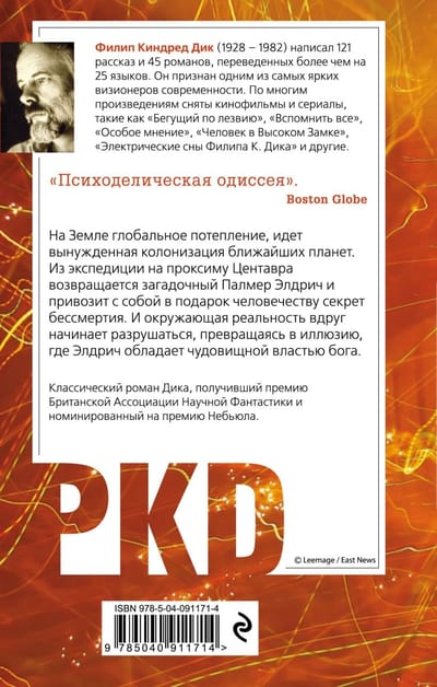 There is global warming on Earth and the forced colonization of the nearest planets is underway. The mysterious Palmer Eldritch returns from an expedition to Proxima Centauri and brings the secret of immortality with him as a gift to mankind. And the surrounding reality suddenly begins to crumble, turning into an illusion where Eldritch has the monstrous power of a god. Dick's classic novel, which won the British Science Fiction Association Award and was nominated for a Nebula Award.