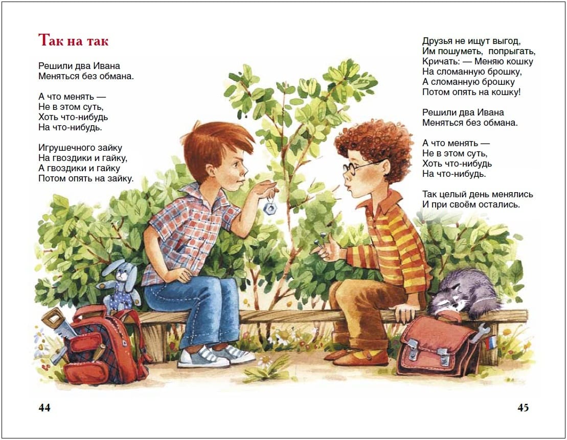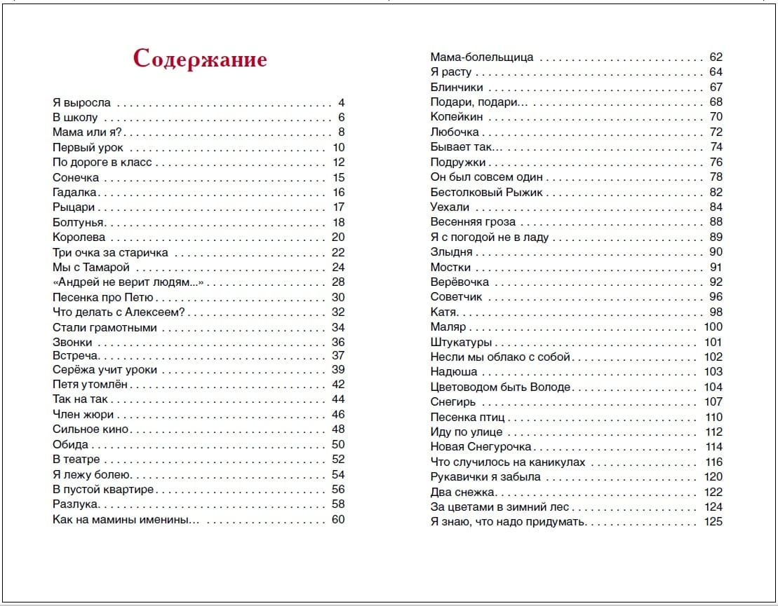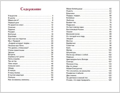 The collection includes wonderful poems by Agnia Barto dedicated to school life: "On the Way to Class", "Knights", "Seryozha Teaches Lessons" and many, many others. These rhythmic, easy to remember, funny and wise poems are loved by children of all ages.