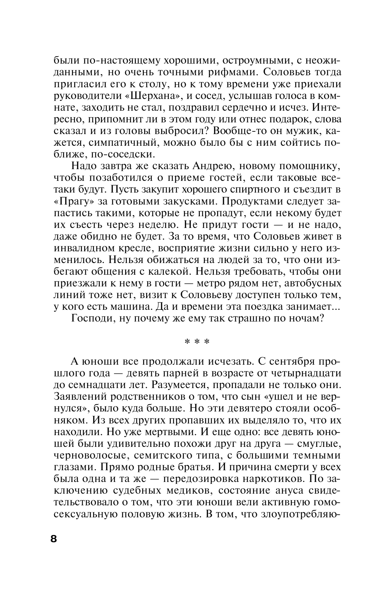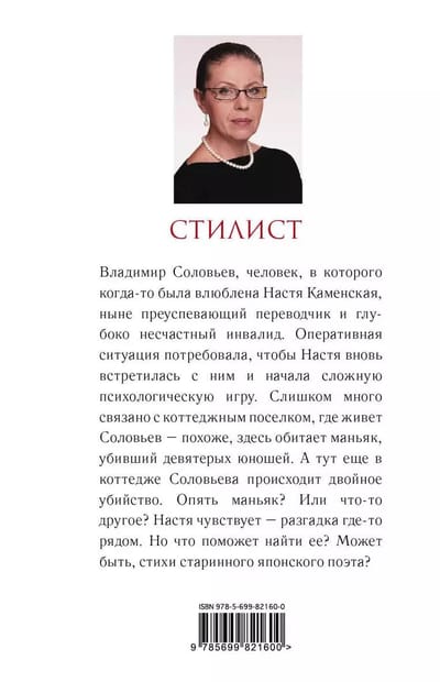 Vladimir Soloviev, the man Nastya Kamenskaya was once in love with, is now a successful translator and a deeply unhappy invalid. The operational situation demanded that Nastya meet him again and begin a complex psychological game. Too much is connected with the cottage village, where Solovyev lives - it seems that here dwells a maniac who killed nine young men. And then there is a double murder in Solovyev's cottage. Another maniac? Or something else? Nastya feels - the clue is somewhere near. But what will help her find it? Maybe the poems of an ancient Japanese poet?