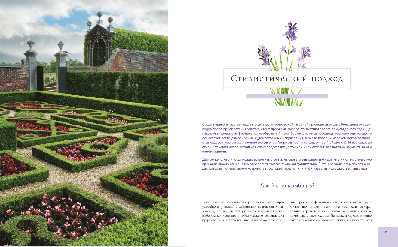 - Different approaches in choosing garden design: stylistic, thematic, ecological-botanical.