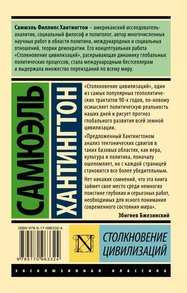The Clash of Civilizations, one of the most popular geopolitical treatises of the 1990s, rethinks the political reality of our days and draws a forecast of the global development of the entire earth civilization.