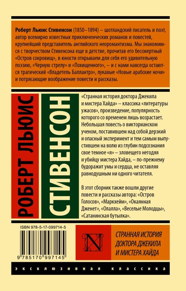 "The Strange Story of Dr. Jekyll and Mr. Hyde" - a classic of "horror literature", a work whose popularity over time only increases. A short story about a Victorian scientist who put a daring and dangerous experiment on himself and thereby let loose from the depths of subconsciousness of his dark self - a sinister villain and murderer Mr. Hyde - still excites minds and hearts, leaving no reader indifferent.