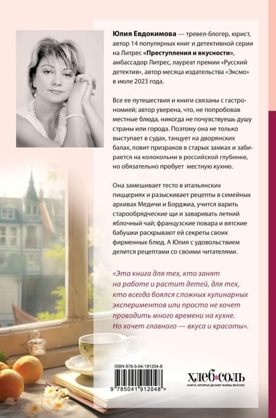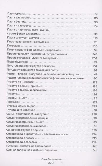 People learn to cook from Julia Evdokimova's recipes, and then send her fervent thanks in chat that everything turns out very tasty! Julia decided that it was time to write a book of recipes, simple and appetizing, with products available in any store, easy to prepare recipes and small time costs. Of course, she couldn't do without stories and illustrations, but unlike her 14 other books, this new one has more than 200 recipes. Variations from around the world for omelets and meatballs, potato, zucchini and cucumber dishes; pastas and risottos, sandwiches, sandwiches and scones, tea and coffee drinks. It all works out, and without the fuss!