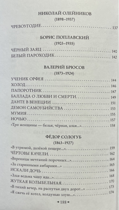 This book includes the most terrifying poems by the best poets of the Silver Age, such as Innokenty Annensky, Andrei Bely, Alexander Blok, Nikolai Gumilyov, Osip Mandelstam, and many others.