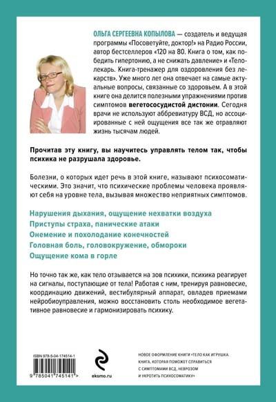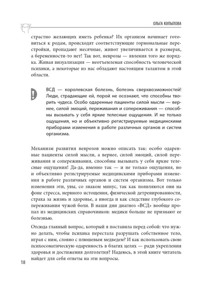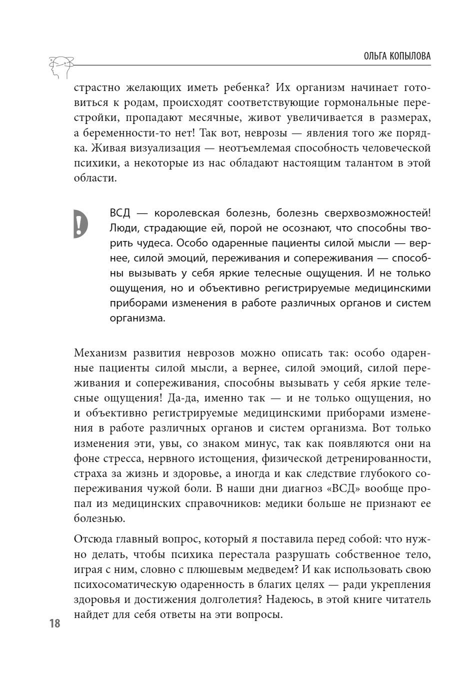 This book explains the mechanisms of occurrence of psychosomatic diseases and tells which systems of the body and how it is affected by psychosomatics. What is really hidden behind the phantom diagnosis of vegetative-vascular dystonia? How can you tame psychosomatics or at least come to an agreement with it? Inside you will find specific recommendations and methods from professional doctors that will help in training the vegetative system of the body and combating panic attacks and overexcitation of the nervous system.