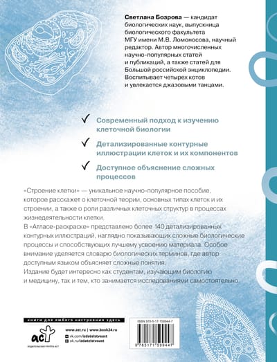 The “Coloring Atlas” contains more than 140 detailed outline illustrations that clearly show complex biological processes and facilitate better assimilation of the material. Particular attention is paid to the dictionary of biological terms, where the author explains complex concepts in an accessible language. The publication will be of interest to both students studying biology and medicine, and those who are engaged in independent research.