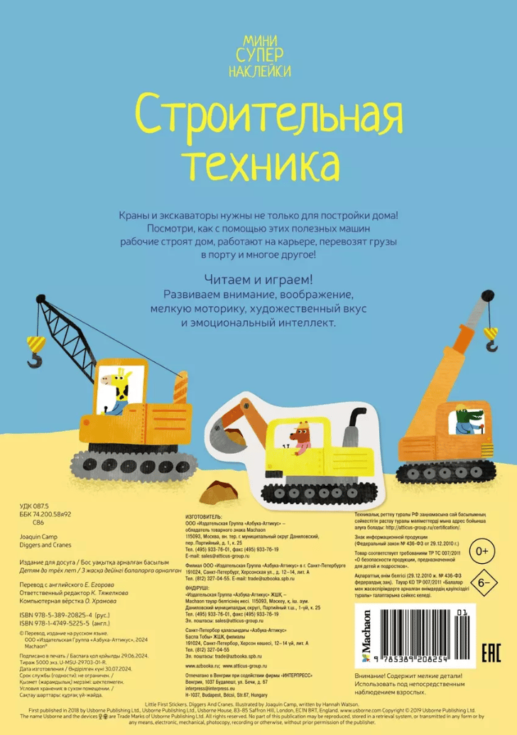 Cranes and excavators are not just for building a house! See how with the help of these useful machines workers build a house, work on a quarry, transport cargo in the port and much more! Read and play! We develop attention, imagination, fine motor skills, artistic taste and emotional intelligence.