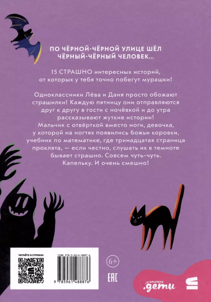 Do you like scary stories? Classmates Lyova and Dania simply adore them! Every Friday they go to each other's houses for the night and tell scary stories until the morning! And, to be honest, listening to them in the dark can be scary. Just a little bit. And very funny! For example, one boy was very afraid of getting a bad grade in English, because everyone who got one died on the spot. And another girl was very afraid of forgetting her change of shoes at home, because everyone who forgot them disappeared right away. And another girl was afraid to open her math textbook, because it was cursed! This book contains 15 scary interesting stories that will definitely give you goosebumps!