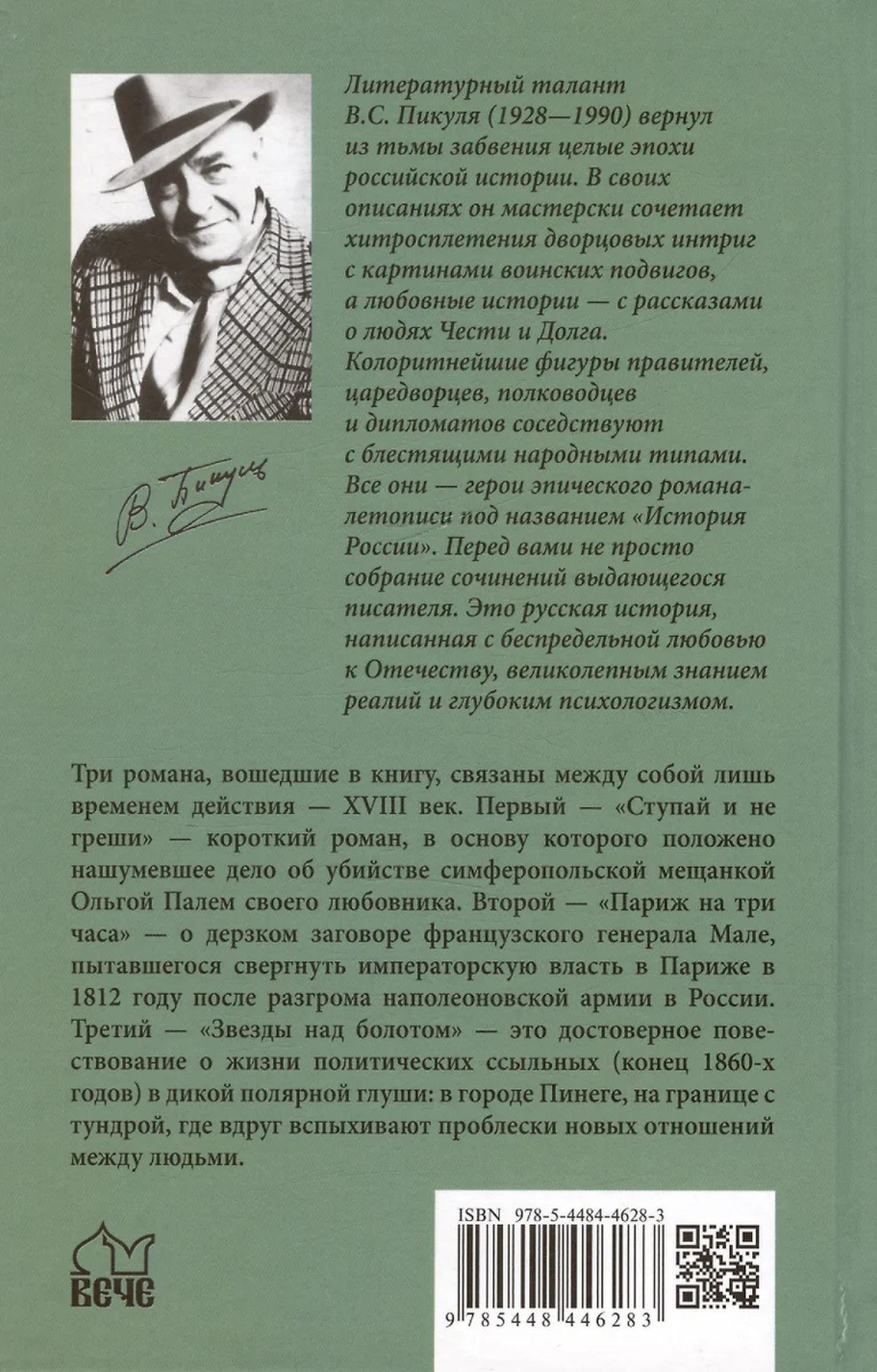 The three novels included in the book are connected only by the time of action - the 18th century. The first - "Go and Sin No More" - is a short novel based on the sensational case of the murder of her lover by the Simferopol bourgeois Olga Palem. The second - "Paris for Three Hours" - is about the daring conspiracy of the French general Malet, who tried to overthrow the imperial power in Paris in 1812 after the defeat of Napoleon's army in Russia. The third - "Stars over the Swamp" - is a reliable story about the life of political exiles (late 1860s) in the wild polar wilderness: in the city of Pinega, on the border with the tundra, where glimmers of new relationships between people suddenly flare up.
