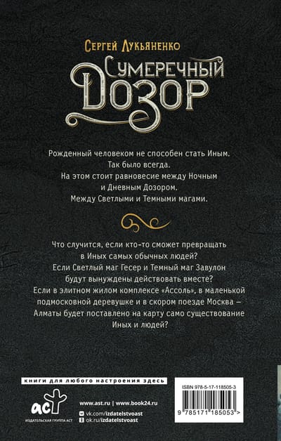 A person born human is not capable of becoming an Other. It has always been so. This is the balance between the Night and Day Watches. Between the Light and Dark magicians. What will happen if someone can turn the most ordinary people into Others? If the Light magician Geser and the Dark magician Zavulon are forced to act together? If in the elite residential complex "Assol", in a small village near Moscow and on the express train Moscow - Almaty the very existence of the Others - and people - is at stake?