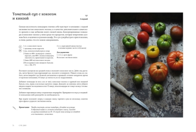 Soup is multifaceted. It is a warming lunch on a cold dark winter day, a light healing and soothing broth, and a bright riot of spring vegetables and herbs. Spinach and rosemary soup, Greek soup with lemon and chicken, tomato soup with coconut and cilantro, vichyssoise, carrot soup with cumin and coriander, laksa with fish meatballs, chowder with lamb and chickpeas, pho bo, beef consommé.... Acclaimed chef and cookbook author Rachel Allen has collected a variety of colorful recipes from different countries, for every taste and for every season. And to complement this delightful collection are all sorts of sauces, croutons, flavorful butters - and, of course, bread. Plain white, whole wheat, rye, buckwheat and oatmeal, corn and soda, scones, scones and muffins - everything you need to diversify cozy home-cooked meals. "Everyone who knows me is aware that I have a passion for soup! No other food can better warm the heart and heal the soul. Smooth-silky mashed potato soup, coarse lumpy chowder, light broth - any soup makes me feel cozy and cared for. When I was a kid, my mom always had chicken or turkey broth on hand, and when my sister Simone and I came home from school, it would turn into some of her wonderful soups. It filled more than just our bellies - it was food for the heart and made us into such passionate soup makers. Now I already have a house full of soup lovers in my own house. It's the first thing (after hugs, of course!) I offer our kids if they're not feeling well. Soup helps with anything from a runny nose to fatigue after a hard day. Our daughter even takes a thermos of broth or soup with her to school for lunch - a welcome home." (Rachel Allen)