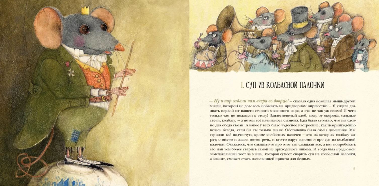 Here is one of the most unusual stories of the great storyteller. Once upon a time, at a big feast, the old mouse king announced to everyone that he would make the mouse queen who would cook the most delicious soup from a sausage stick. But where can he find the treasured recipe that can win the heart of the tailed monarch? Four nimble mice set off on a long journey full of trials. On the eve of the announced date, everyone gathered in the royal kitchen, but... only three mice returned - there was no sign of the fourth, and yet the appointed day was about to arrive...