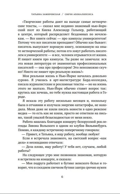 "Candles of the Apocalypse" is a new book by Tatyana Zamirovskaya, a writer and journalist, author of the novel "Death.net", collections "Land of Random Numbers", "Sparrow River" and "Life Without Noise and Pain".