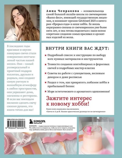 In recent years, beautiful and delicious-smelling candles have become an integral part of our lives. They are the most versatile and enjoyable gift for colleagues, friends, and family; they create the most cozy and magical atmosphere in any space; they decorate homes, shops, and restaurants. If you've ever wanted to make a candle yourself, this book is definitely for you!