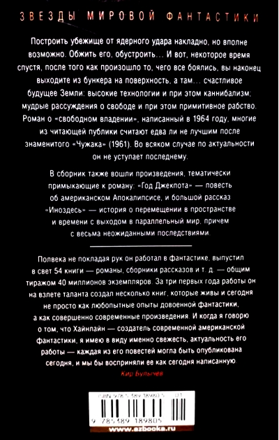 Building a nuclear shelter is expensive, but entirely possible. You settle in, furnish it... And then, some time later, after what everyone feared has happened, you finally emerge from the bunker to the surface, and there... a happy future for Earth: high technology, yet cannibalism; wise discourses on freedom, yet primitive slavery.
