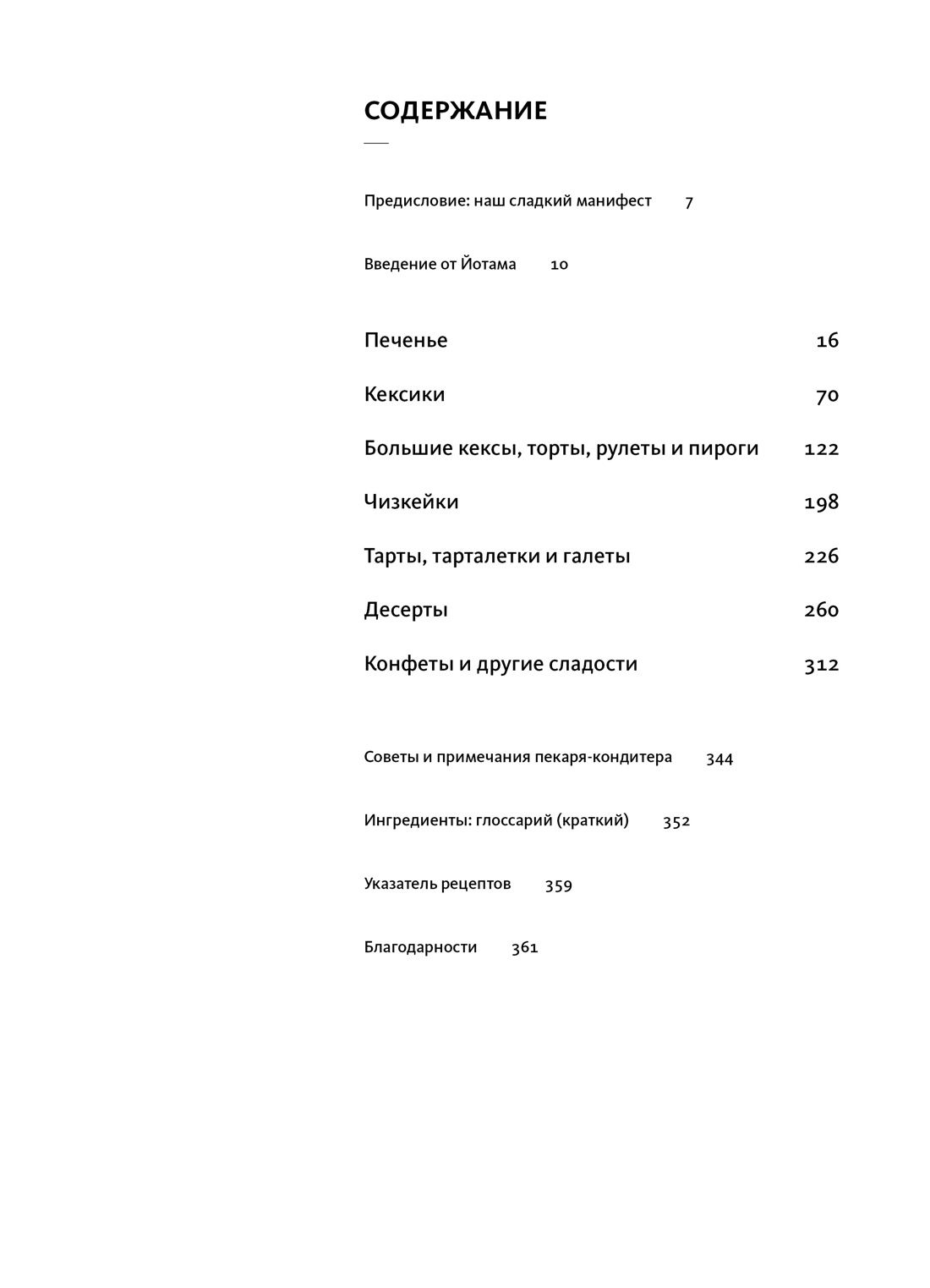 More than 110 recipes for sweets - cookies, muffins, rolls, cakes and pies, cheesecakes, tarts and tartlets, desserts and candies - in a new bestseller from celebrity chef Yotam Ottolenghi and his assistant Helen Goh, a pastry chef from Australia. Tahini and halva brownies, peanut shortbread cookies, Victoria sponge with strawberries and white chocolate cream, coconut, almond and blueberry tart, saffron custard doughnuts, chai brûlée tartlets, raspberry lollipops... The choice is yours! "Many of the treats in this book are the result of enthusiastic Sunday tastings. There are also older recipes here that go back to the very beginnings of the Ottolenghi brand. They have evolved naturally through feedback from visitors and staff. Many of them are contributions from the talented pastry chefs who have worked with us over the years. And finally, some recipes we created specifically for this book when we felt it was missing some angle, style or just something we like from a sweet tooth." (Yotam Ottolenghi, Helen Goh)