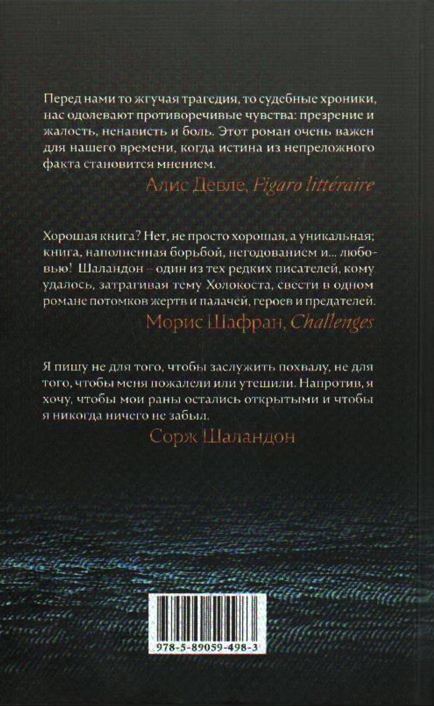 The author questions the history of the Vichy regime, as well as the nature of the incomprehensible evil that drove people to death camps with such equanimity during the war. The narrative is particularly poignant because it is an autobiographical novel that also engages with collective memory.